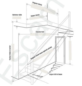Voici d’abord une fiche de renseignements pour prise de cotes : cette fiche « généraliste » doit nous permettre d’en savoir plus sur la structure de votre logement, et plus exactement sur la structure de l’implantation de votre escalier.